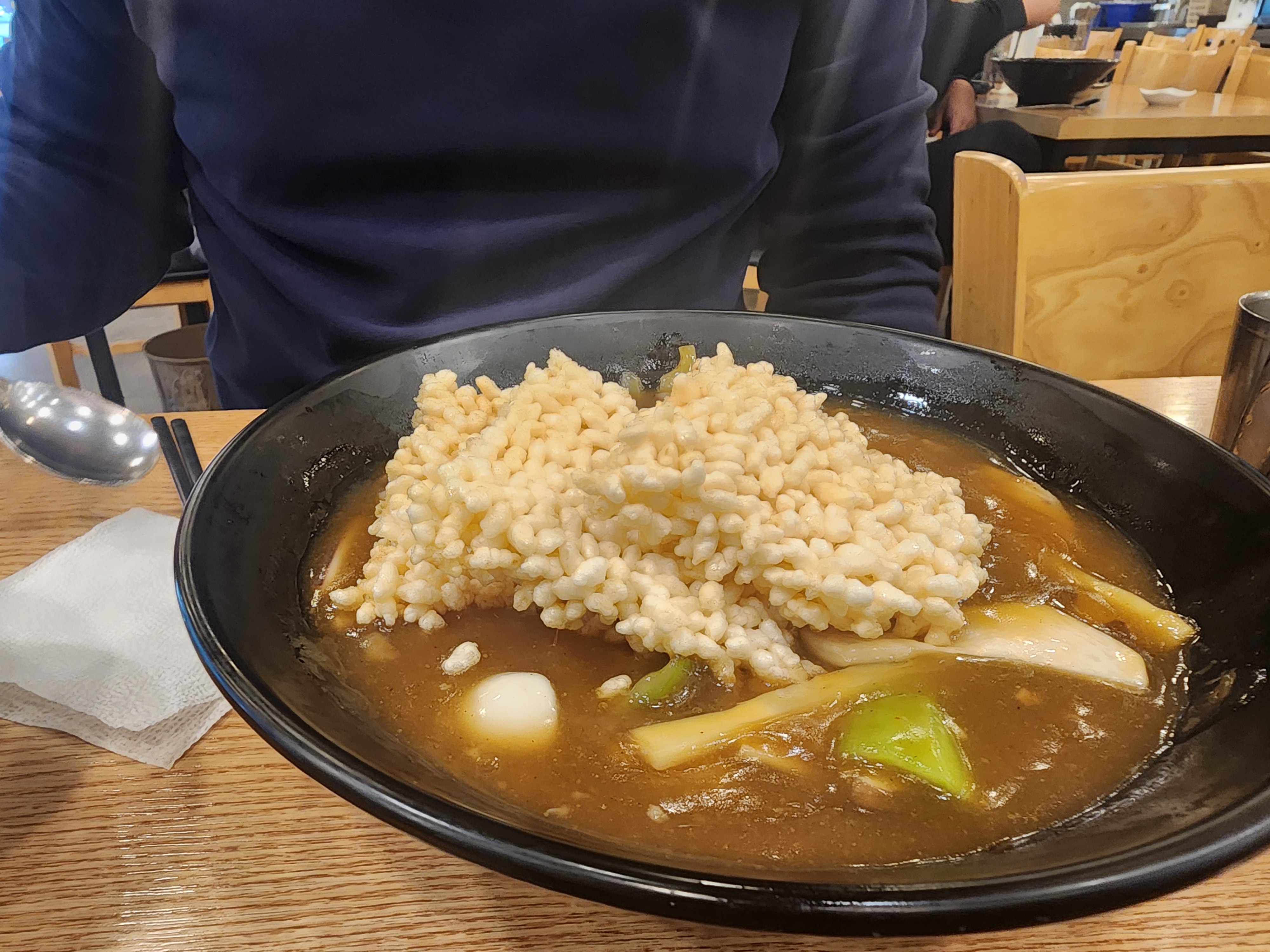 우리는 이번엔 누룽지탕밥을 시켰는데요 맛이 좋아요 고소한 누룽지와 해물이 들어있고